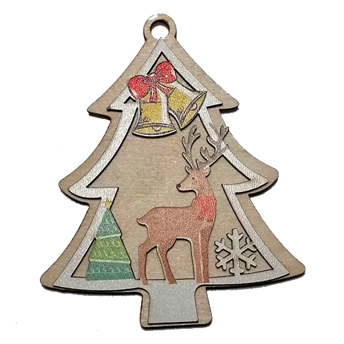Fa többrétegű karácsonyfadísz. Mind a két oldala ugyanúgy ki van dolgozva.