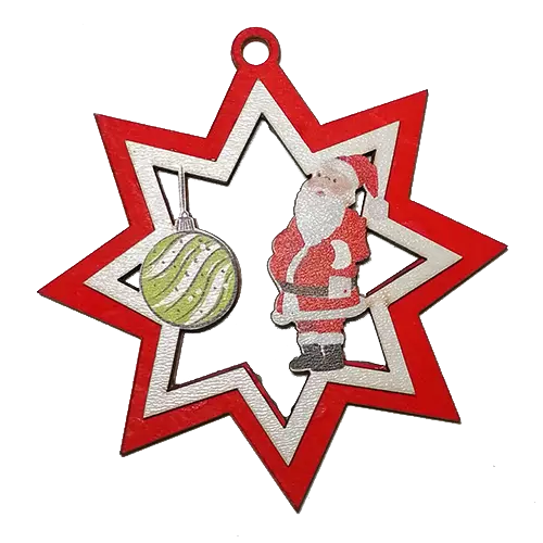 Fa többrétegű karácsonyfadísz. Mind a két oldala ugyanúgy ki van dolgozva.