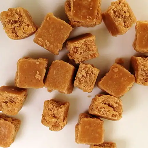 Az egyik legfontosabb különbség az ipari mennyiségben gyártott karamellával szemben, hogy nem tejsavóporból készül, hanem valódi vajjal. Ezt a különbséget érezni lehet. A vaj eléggé zsíros, hogy puhaságot adjon a terméknek, de a tej tartalma miatt ízét is nagyban meghatározza.